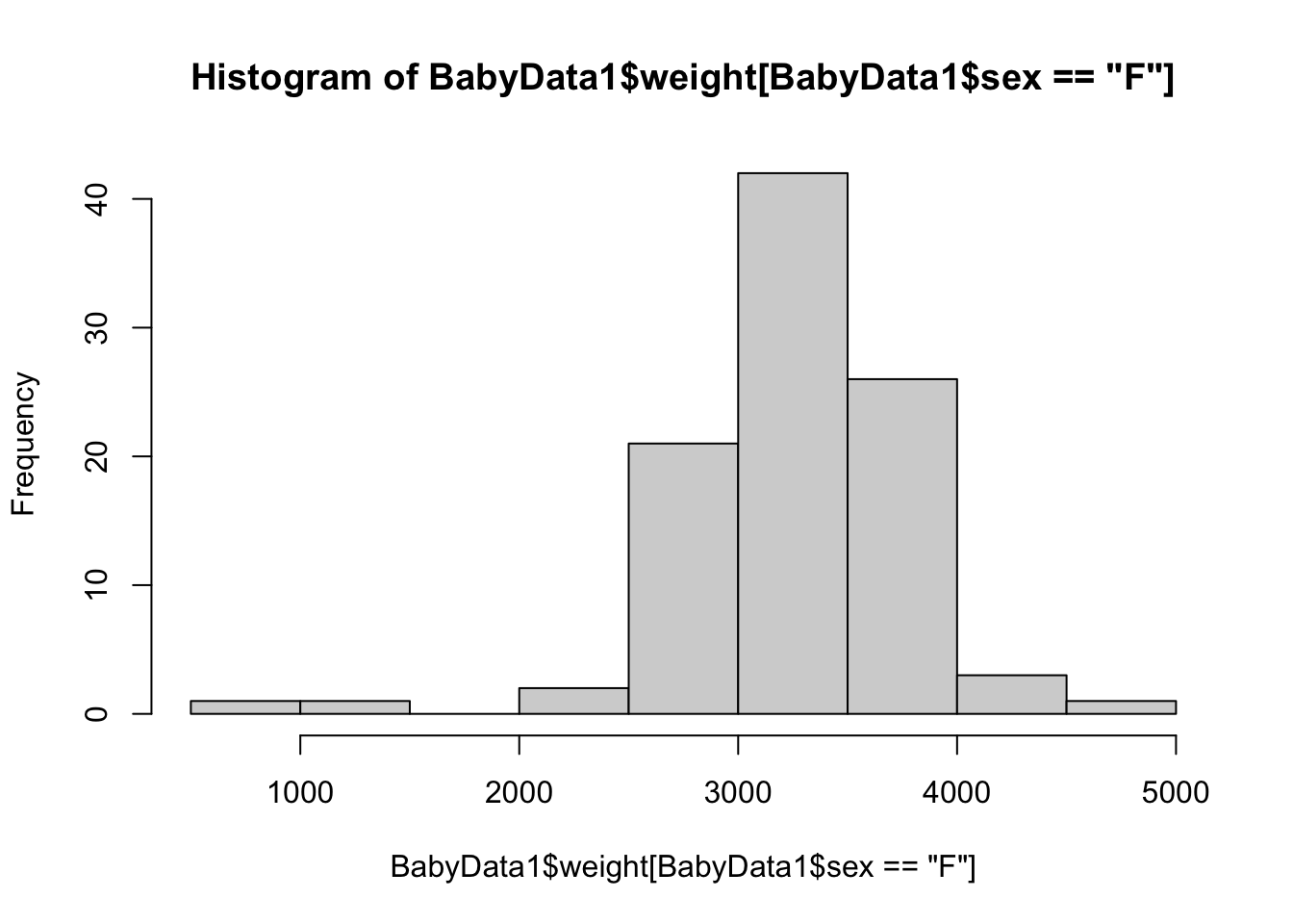 df <- BabyData1In fact, all you need to do is put your cursor on the line containing df <- BabyData1 and rerun that line. We verify this “fix” worked by once again looking at the contents of df$sex.